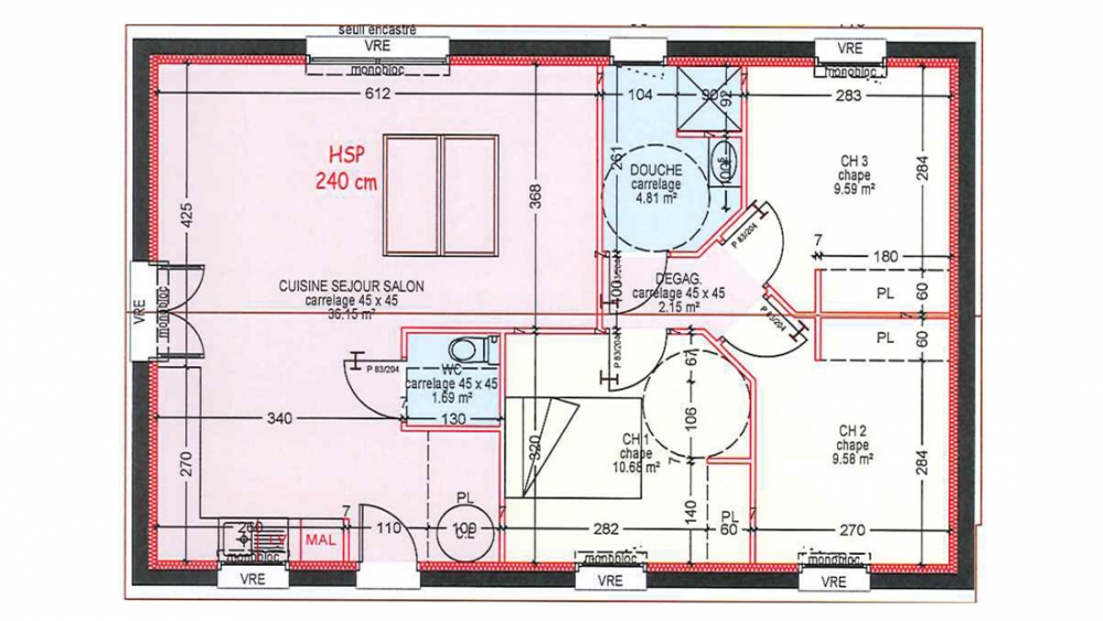 Non compris : finition peintures, revêtement sols chambres et aménagement clôtures extérieur.