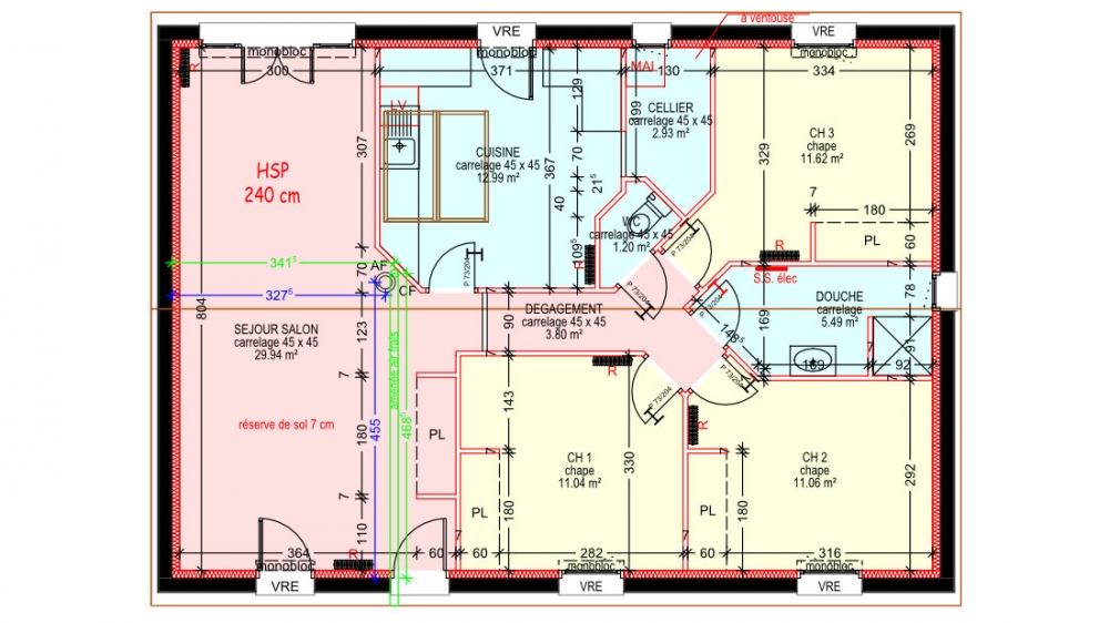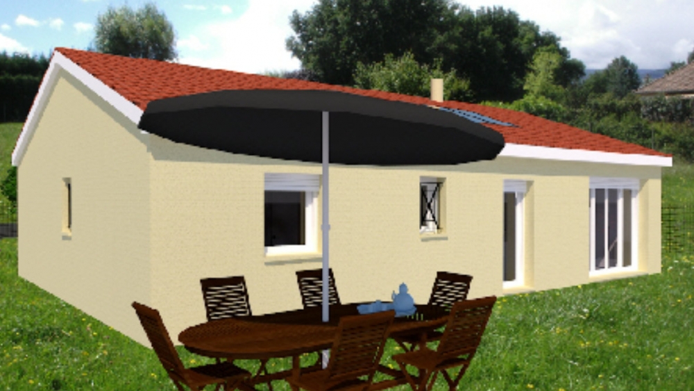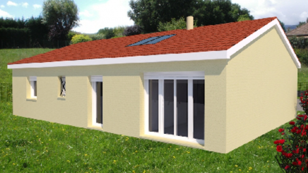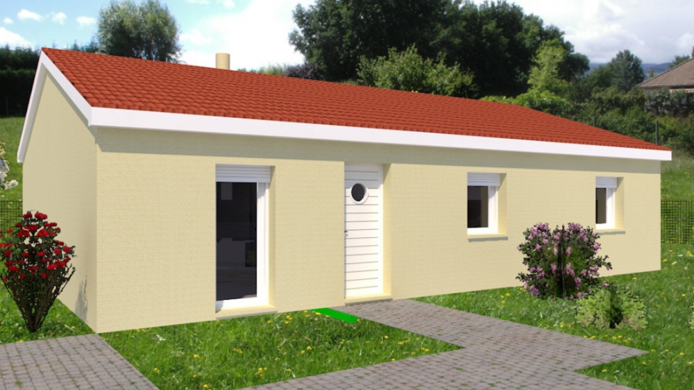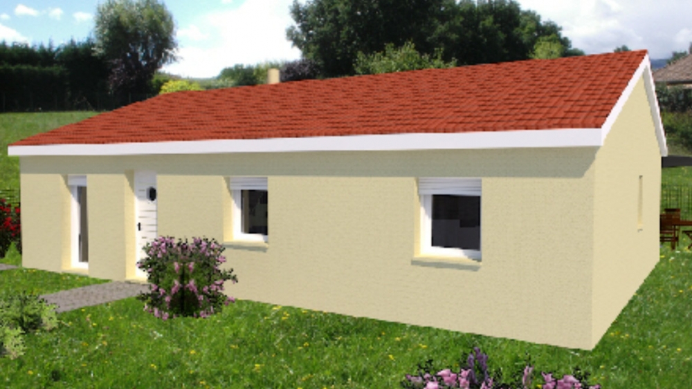 Maison de plain pied avec 3 chambres, une cuisine indépendante, un cellier et un séjour.